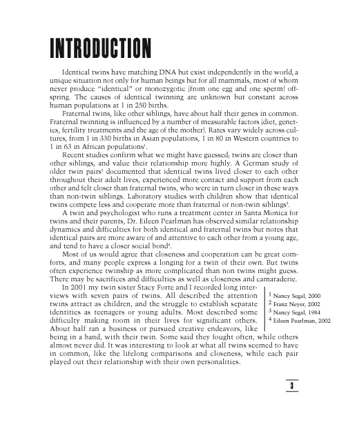 The results are fascinating for any twin or family member of a twin. The survey is included so that twins who read this book can take it and see where they fall in the averages.